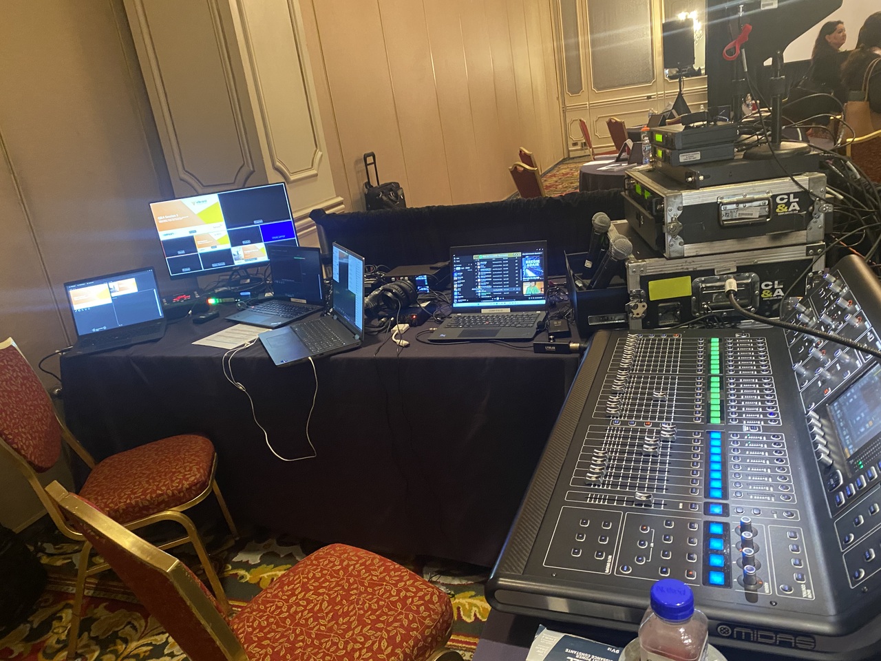 Because ABC plans ahead, we keep multiple equipment and staging gear types of varying compatibilities and sizes on-hand (i.e. stage setups, curtain options, audio adapters and cables, visual device adapters, conversion cables) for any imaginable audio visual scenario we are covering.